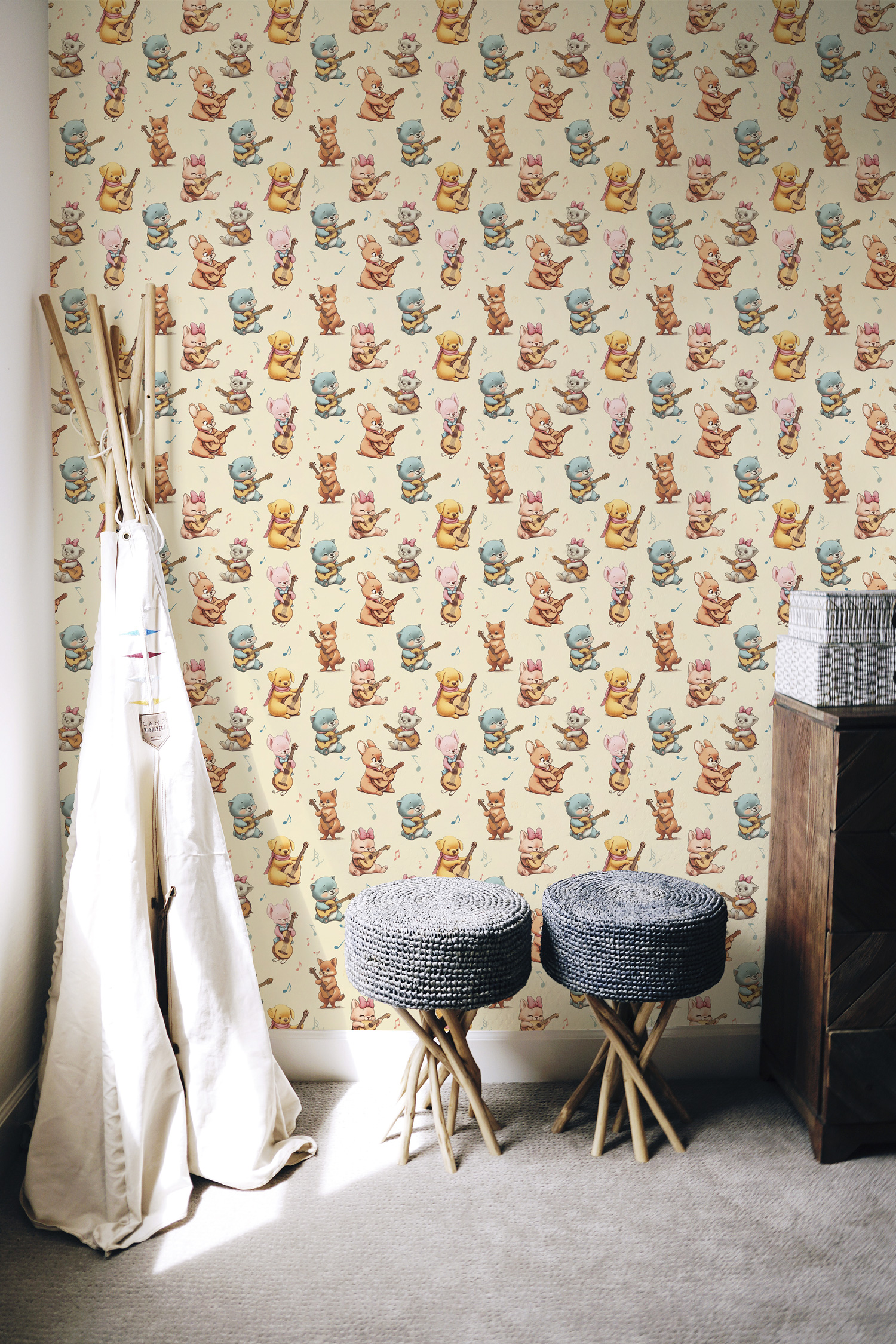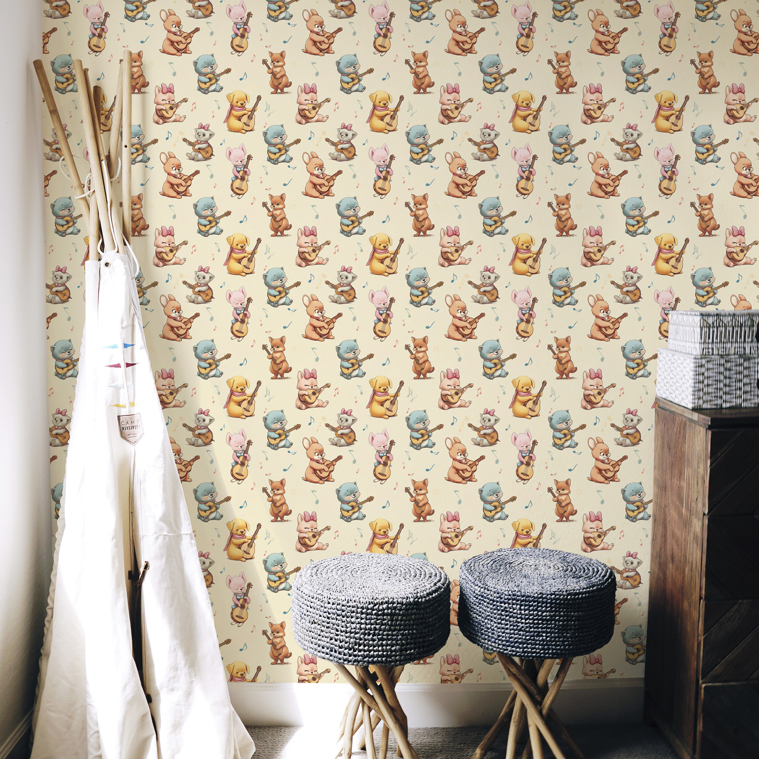 Plongez dans un monde enchanteur avec notre papier peint panoramique « Animaux musiciens ». Imaginez une chambre où des animaux joyeux, vêtus de costumes colorés, jouent de la musique et créent une atmosphère festive. Ce papier peint transformera votre espace en une scène vivante, captivant l’attention de vos enfants et apportant une touche ludique à votre décoration intérieure.