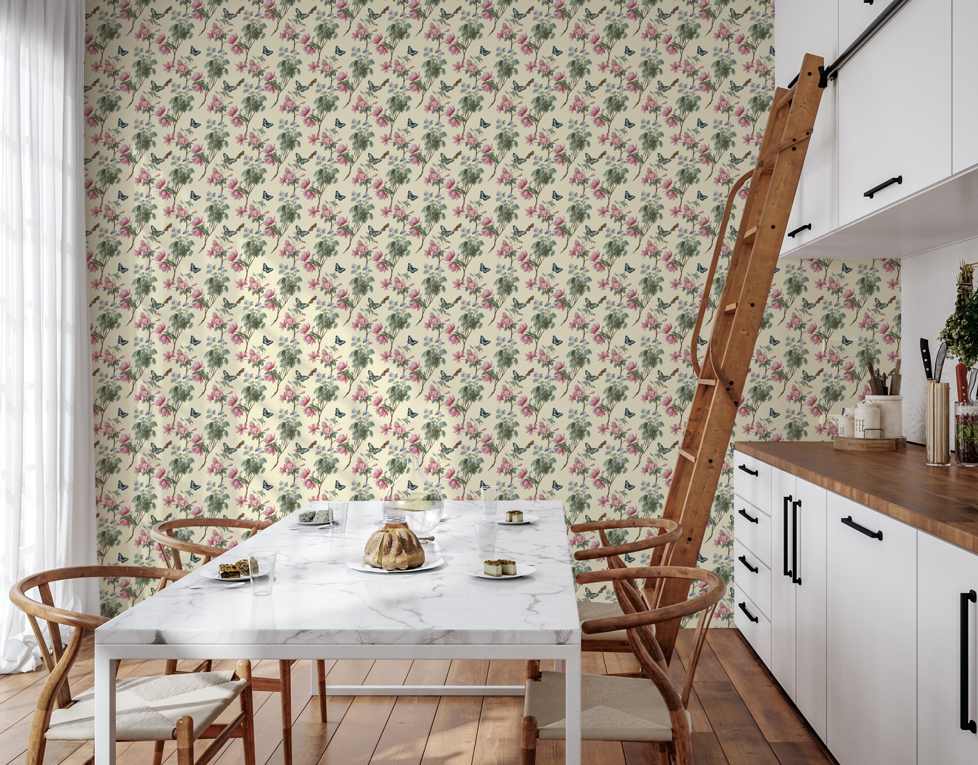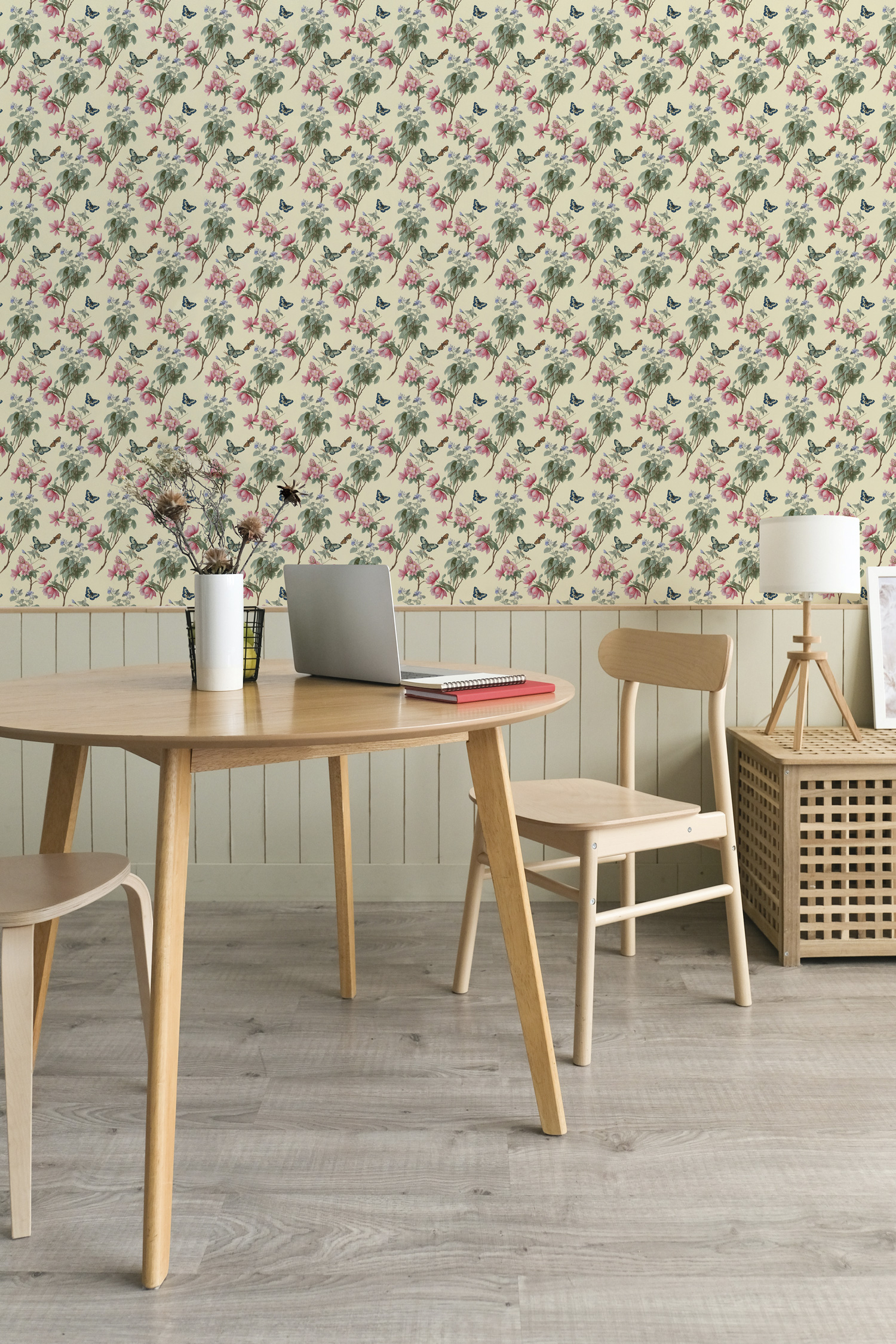 Transformez votre intérieur en un véritable jardin enchanté avec notre papier peint panoramique « Fleurs et papillons ».