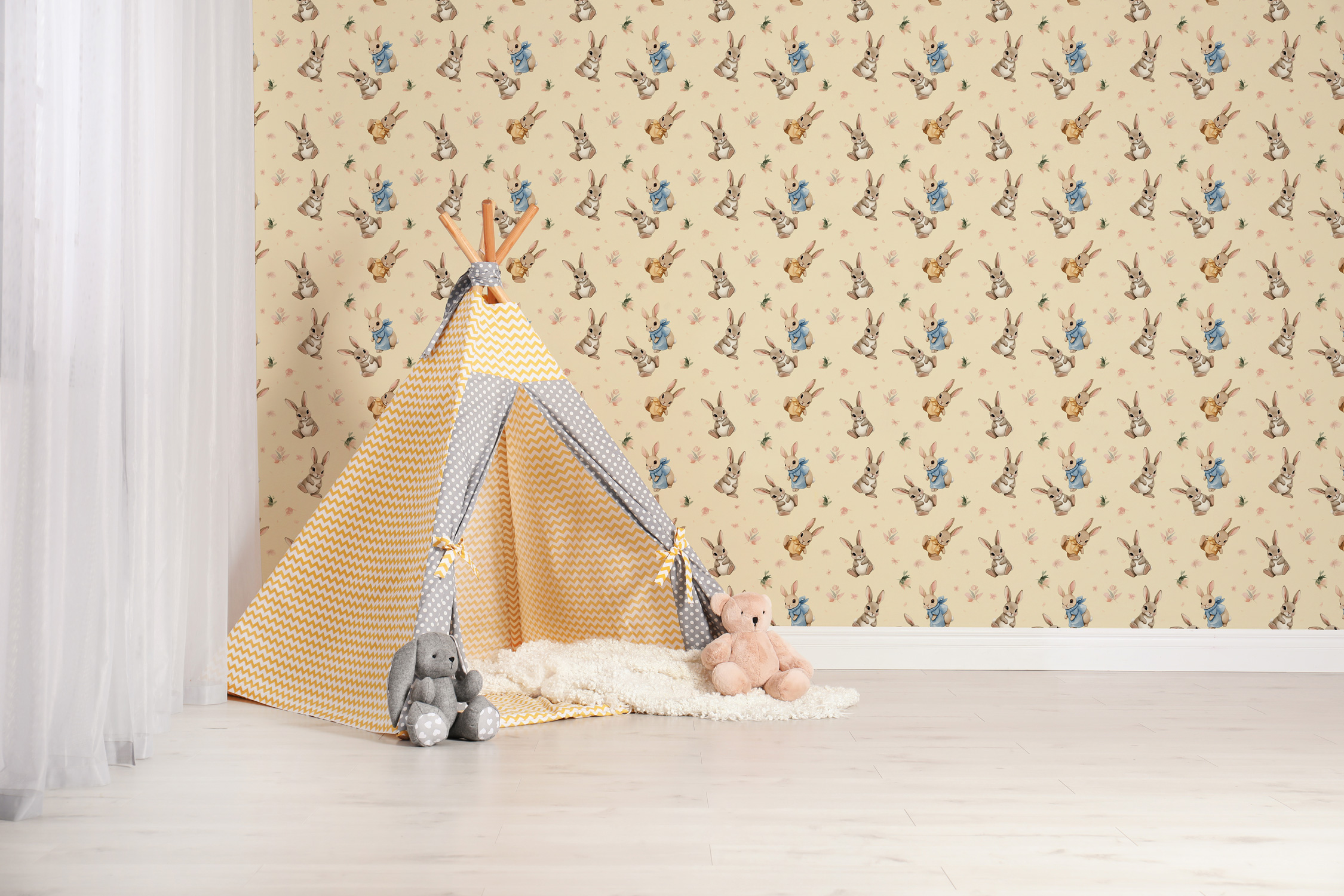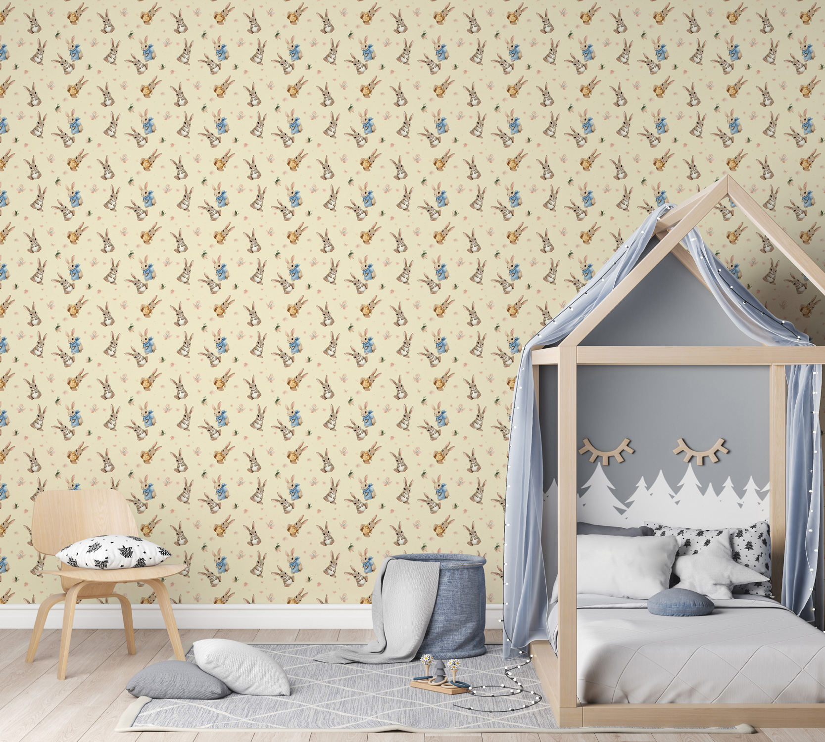 Transformez votre intérieur en un véritable jardin de merveilles avec ce papier peint unique, et laissez les lapins vous guider vers des jours heureux !